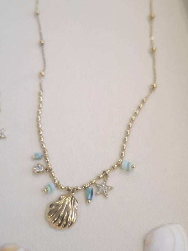 Zirkonia schelpster - Juwelen set - 18k verguld goud